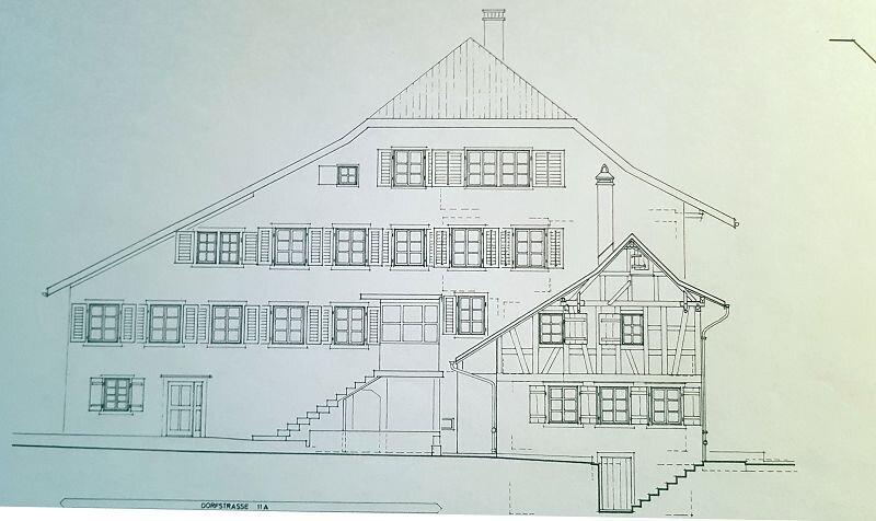 Für die genauen Masse im Masstab 1:50 verwendete ich als Vorlage die Baupläne, Ansichten und Schnitte wo ich erhalten habe.